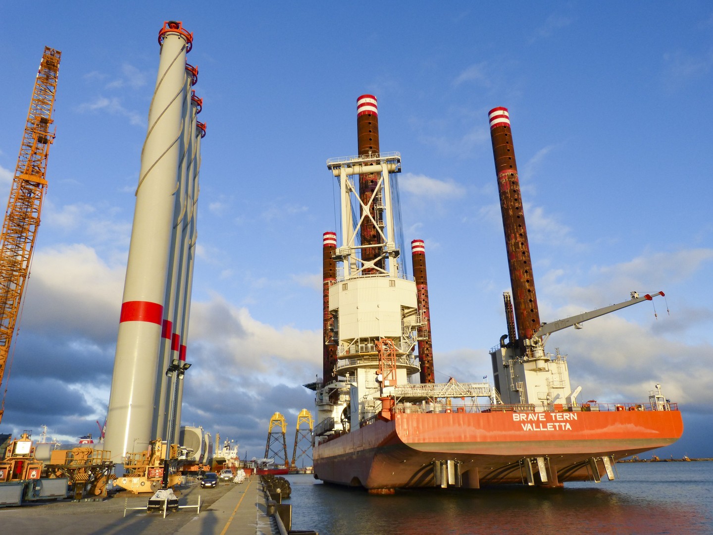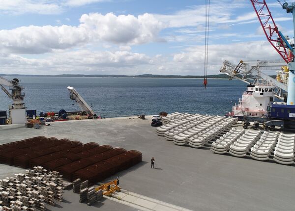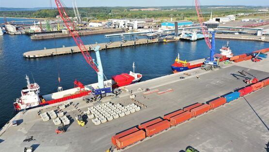 Mukran Industrial Site bietet nicht nur beste Voraussetzungen für Ihre Produktion, sondern auch für Ihre Logistik. Unser Transport-, Verlade- und Umschlagsequipment lässt keine Wünsche offen und ist selbst für besonders schwere und sperrige Lasten, beispielsweise Rohre für Pipelines, ausgelegt. Schiffe können an der Kaikante einfach an- und ablegen und Zement, sonstige Zuschlagstoffe, Betonfertigteile oder Stahlbauelemente auch in größeren Dimensionen aufnehmen oder abladen. Ist die Ware an Bord, kann es gleich ohne umständliche Revierfahrt losgehen. Wir sind Deutschlands nordöstlichster Tiefwasserhafen. Die Wassertiefe beträgt derzeit 10,5 Meter. Kurz bis mittelfristig planen wir einen Ausbau auf sogar 14 Meter. Attraktive Märkte in Skandinavien und im Baltikum erreichen Sie per Schiff in einem, maximal zwei Tagen.