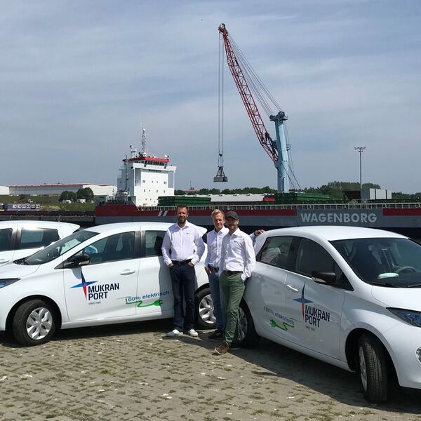 Sassnitz-Mukran, 11. Juli 2019 — Der Mukran Port setzt verstärkt auf grüne Mobilität. Aktueller Beitrag zum Klimaschutz des Hafens ist die Umstellung der betriebseigenen Pkw-Flotte auf Elektrofahrzeuge. Zunächst werden drei E-Autos vom Typ Renault Zoe für Verkehre am Standort selbst sowie für Strecken bis nach Stralsund eingesetzt Auch die notwendige Ladeinfrastruktur wurde bereits im Hafengebiet installiert.