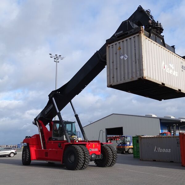 Sassnitz-Mukran, 26. Oktober 2018 - Am 15.10.2018 wurde der Kalmar Reachstacker mit einem Eigengewicht von fast 70 Tonnen bei Mukran Port Terminals angeliefert.