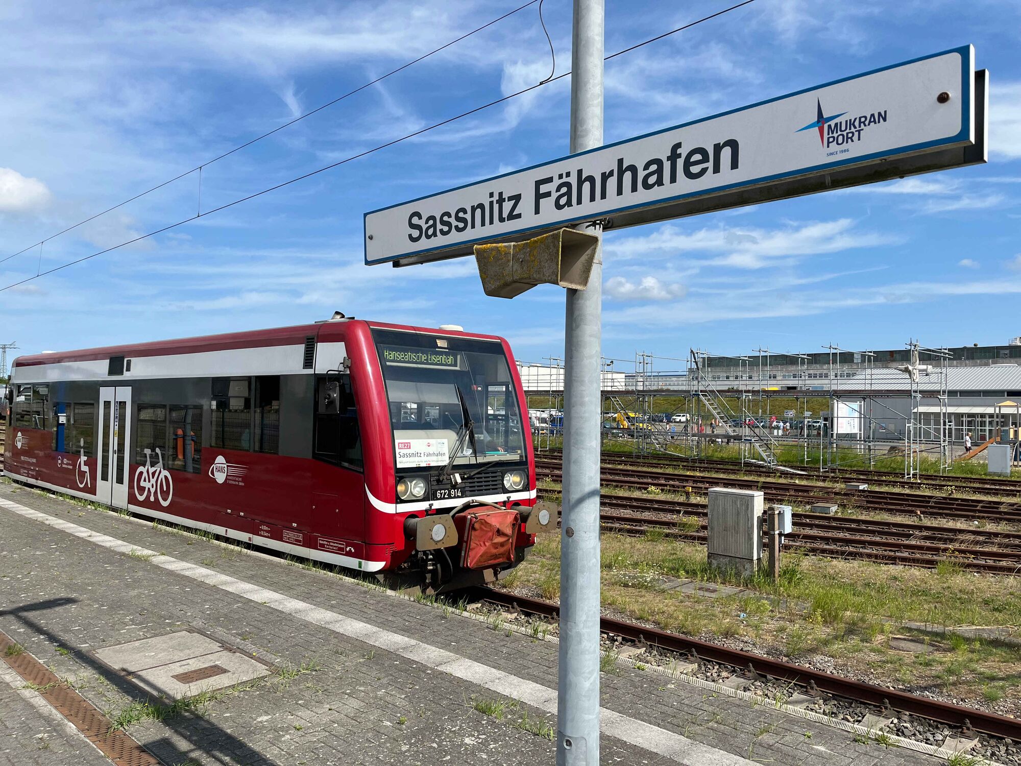 Sassnitz-Mukran, 17.04.2025 – Fahrgäste der Bornholmslinjen von und nach Rønne dürfen sich auch in dieser Sommersaison wieder über eine direkte Anbindung durch den RE27 von Bergen auf Rügen zum Fährhafen Mukran freuen. Die Hanseatische Eisenbahn GmbH (HANS) verkehrt vom 24. Mai bis zum 18. Oktober 2025 donnerstags, samstags und sonntags. Neu ist die Verbindung am Montag. Das Land Mecklenburg-Vorpommern sichert gemeinsam mit der Verkehrsgesellschaft Mecklenburg-Vorpommern mbH (VMV), dem Mukran Port und der HANS den saisonalen Verkehr. Die Direktverbindung stellt eine umweltfreundliche, staufreie Alternative zur Anreise mit dem Auto dar – insbesondere für Urlauberinnen und Urlauber aus Berlin, Hamburg, Brandenburg und Mecklenburg-Vorpommern.