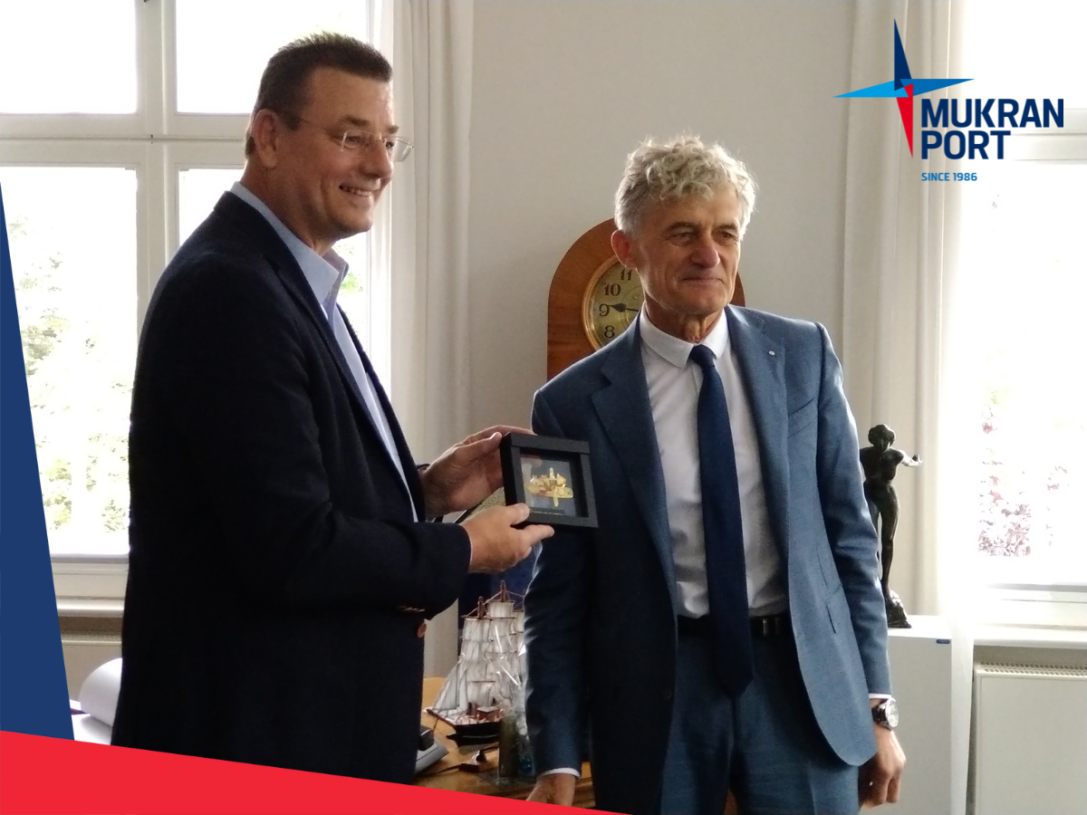 Sassnitz-Mukran, 15. Jule 2022 — Representatives from the Port of Klaipeda are guests at Mukran Port to exchange ideas with experts on the topic of offshore wind energy. In addition to a joint workshop and networking event, there was also a visit to the town hall of Sassnitz. The two cities are partner cities for many years allready.