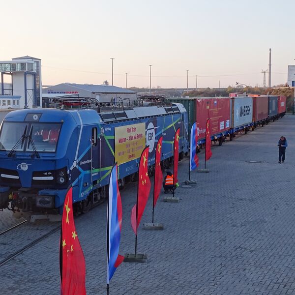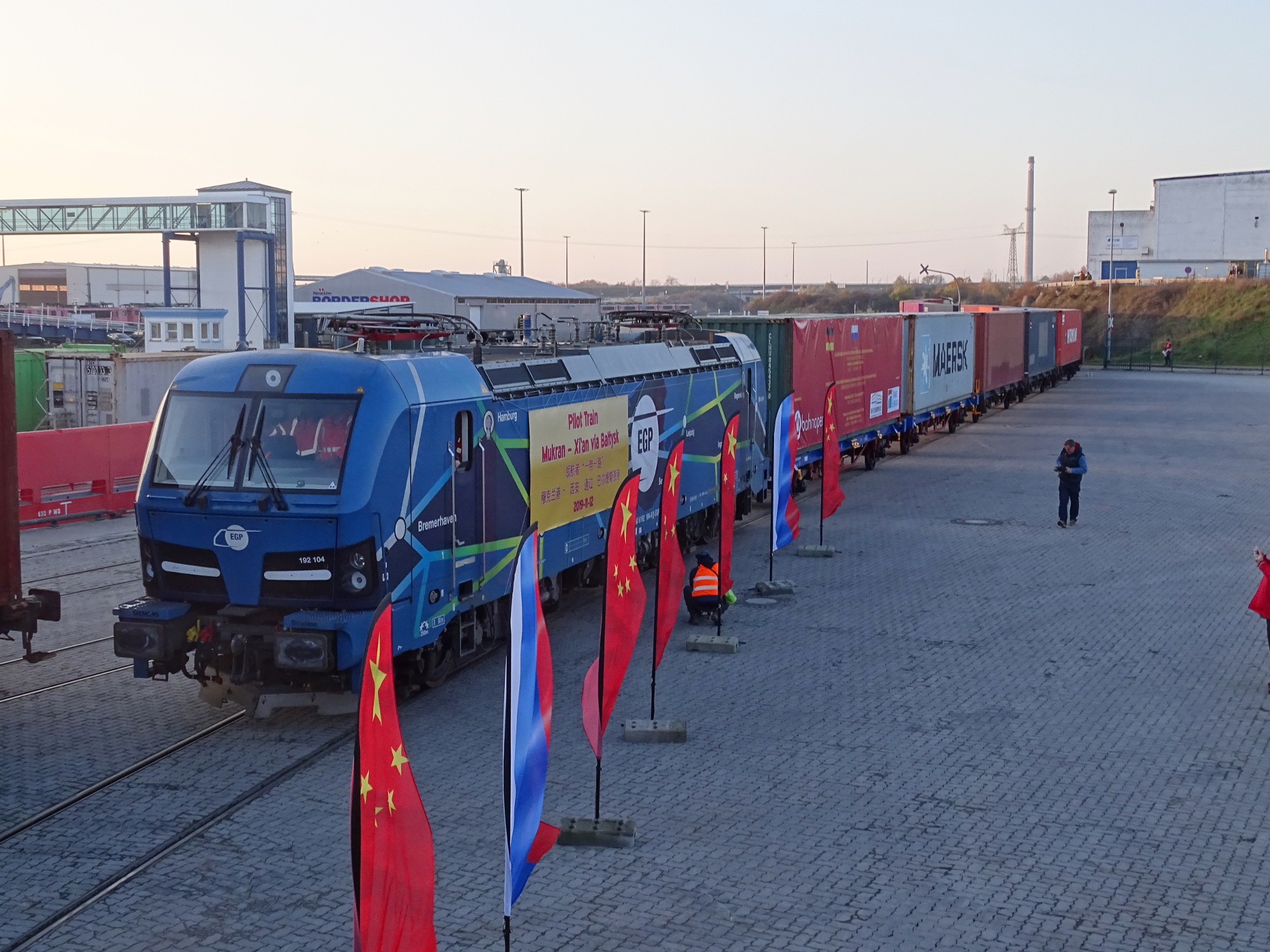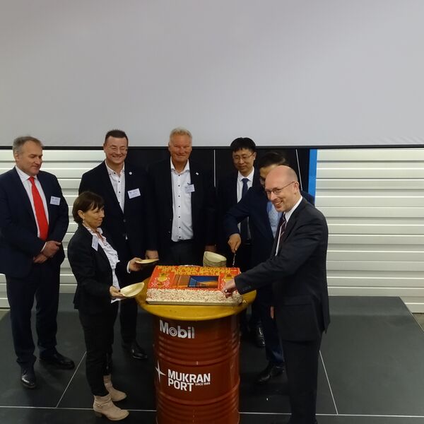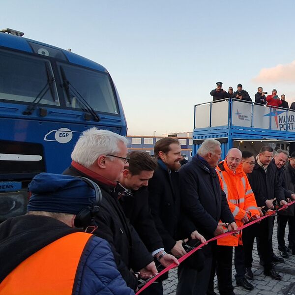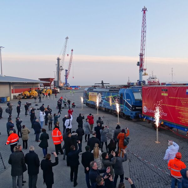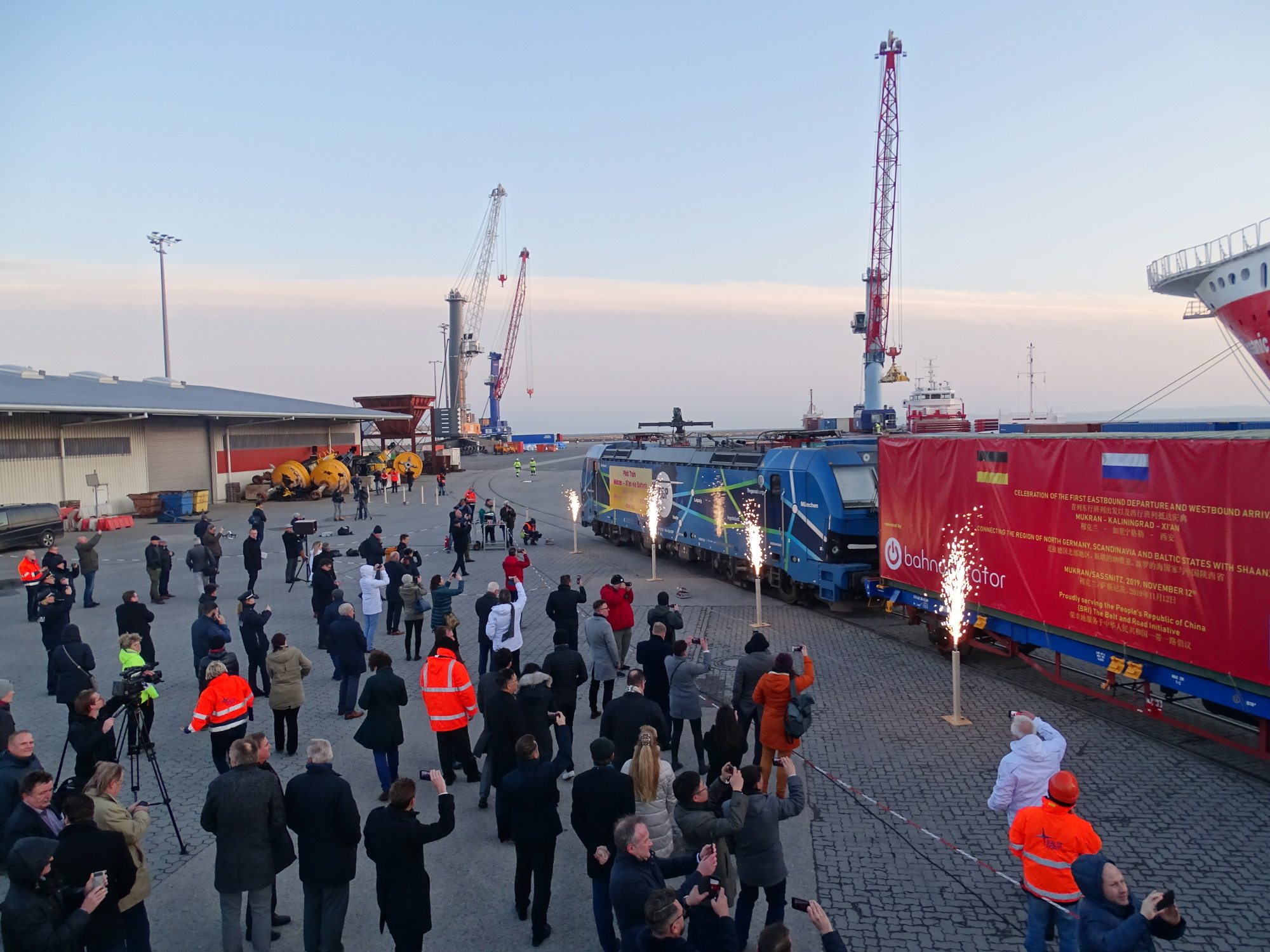 Sassnitz-Mukran, November 19, 2019 - The first direct freight train connection between China and Mecklenburg-Western Pomerania arrived at Mukran Port on Tuesday 12th November. The train going east started its journey with 48 Containers. The 640m long freight train going west started its 10.000 km long trip from Xi´an in China via Kazakhstan, Russia and Belarus to Baltijsk in Kaliningrad loaded with 41 Containers, where they were loaded onto a short sea carrier. Arriving at Mukran Port the team of Mukran Port Terminals GmbH & Co. KG handled the cargo and lifted the containers back onto a train.This new route of the “Silk Road Initiative” was ceremonially inaugurated by all parties and persons involved.