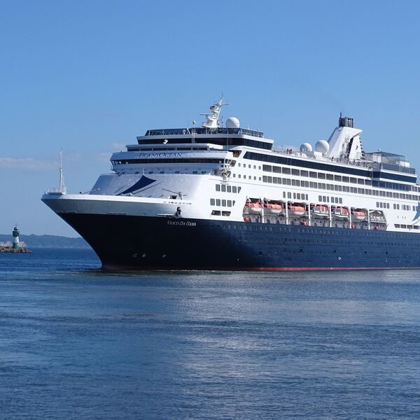 Sassnitz-Mukran, July 23, 2019 - Cruise & Maritime Voyages / TransOcean Cruises newest fleet member, the Vasco da Gama, arrived at Mukran Port in the early morning hours. As part of an on-board reception, the mayor of the city of Sassnitz Frank Kracht welcomed the captain of the ship. The 219 m long and 30.8 m wide cruise ship offers space for 1,220 passengers and will be operating in the Baltic Sea in July and August.
