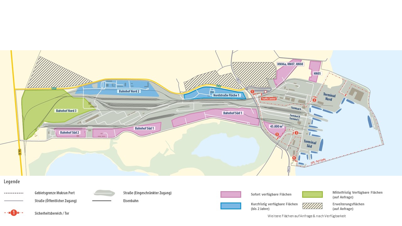 Sie wollen hoch hinaus und denken groß? Dann sind Sie auf der Mukran Industrial Site genau richtig. Als Industrie- und Großgewerbestandort verfügen wir über freie, voll erschlossene Flächen in unmittelbarer Nähe zur Kaikante. Direkt an der Ostsee gelegen, sind wir ein trimodales Drehkreuz weltweiter Warenströme. Von hier aus erreichen Sie Märkte in Skandinavien, im Baltikum, in Finnland, GUS genauso schnell wie die Wirtschaftszentren Hamburg, Duisburg, Köln und Rotterdam. Als Drehkreuz für die Neue Seidenstraße haben wir sogar China in greifbare Nähe gerückt.