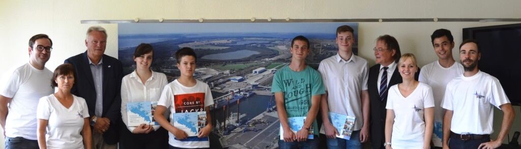 Sassnitz-Mukran, 7. August 2017 - Seit mehr als zwei Jahrzehnten bildet der Mukran Port jungen Menschen für ihren beruflichen Weg aus. Auch 2017 starteten fünf junge Menschen ihre Lehre im östlichsten Tiefwasserhafen Deutschlands. Vier Berufsanfänger werden im Ausbildungsberuf Kauffrau/-mann für Büromanagement geschult und einer startet seine Lehrstelle als künftiger Hafenlogistiker. Für diesen Ausbildungsberuf bietet das Unternehmen in diesem Ausbildungsjahr noch einen weiteren Platz an, den der Mukran Port mit einem motivierten Schulabgänger aus der Region besetzen möchte.