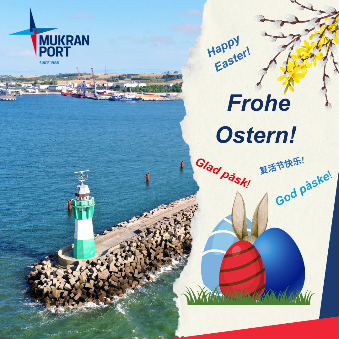 Sassnitz-Mukran, 04. April 2023 - Mukran Port wünscht allen Partnern, Freunden und Mitarbeitern entspannte und frühlingshafte Osterfeiertage!
