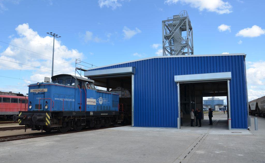 Sassnitz-Mukran, 10. August 2016 — Im Mukran Port auf der Insel Rügen wurde heute (10. August 2016) eine neue Schüttgutentladestelle für Eisenbahnwaggons offiziell in Betrieb genommen. Die Freigabe erfolgte unter anderem durch Mecklenburg-Vorpommerns Verkehrsminister Christian Pegel. Der Hafen hat sich in den vergangenen Jahren zu einem wichtigen Umschlagplatz für Agrargüter entwickelt. Allein in diesem Jahr sollen mindestens eine Million Tonnen in diesem Bereich über die Kaikante gehen. In 2016 wurden bereits über 60 Schiffe für internationale Getreidetransporte beladen.