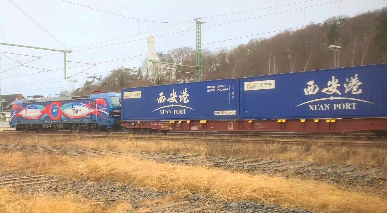 Sassnitz-Mukran, 10.02.2022 - The EGP Siemens Smartron electric locomotive with the identification “192 103“ [NVR number: 91 80 6192 103-0 D-EGP], know to all as the “Dragon Locomotive“, on the way from Mukran to Hamburg with containers from the Baltic Sea Bridge again.