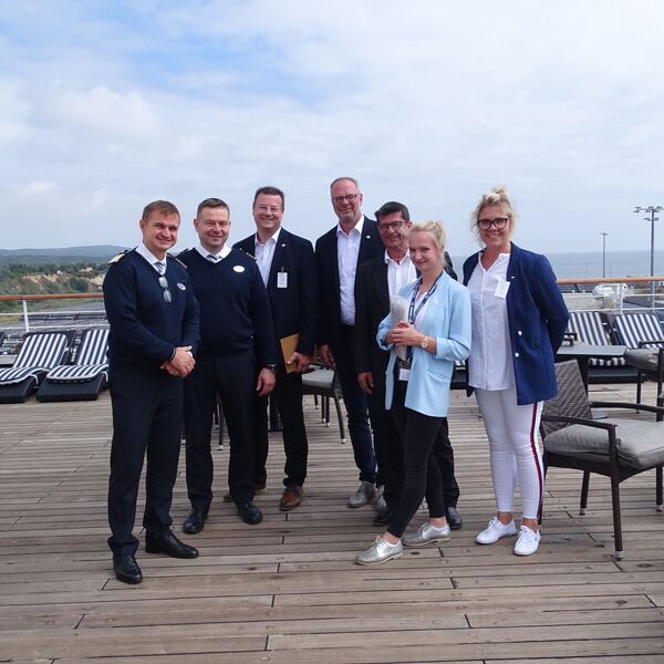Sassnitz-Mukran, July 23, 2019 - Cruise & Maritime Voyages / TransOcean Cruises newest fleet member, the Vasco da Gama, arrived at Mukran Port in the early morning hours. As part of an on-board reception, the mayor of the city of Sassnitz Frank Kracht welcomed the captain of the ship. The 219 m long and 30.8 m wide cruise ship offers space for 1,220 passengers and will be operating in the Baltic Sea in July and August.